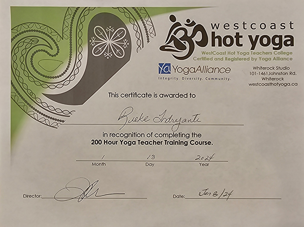 – 200hr Westcoast Hot Yoga, White Rock, BC, Canada